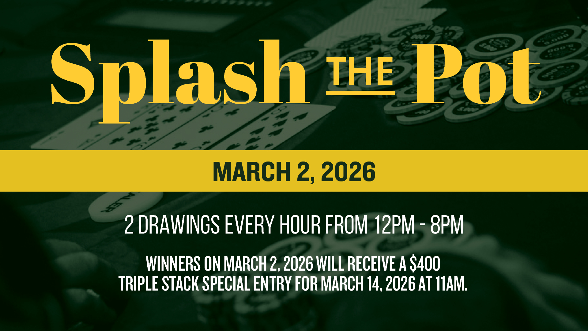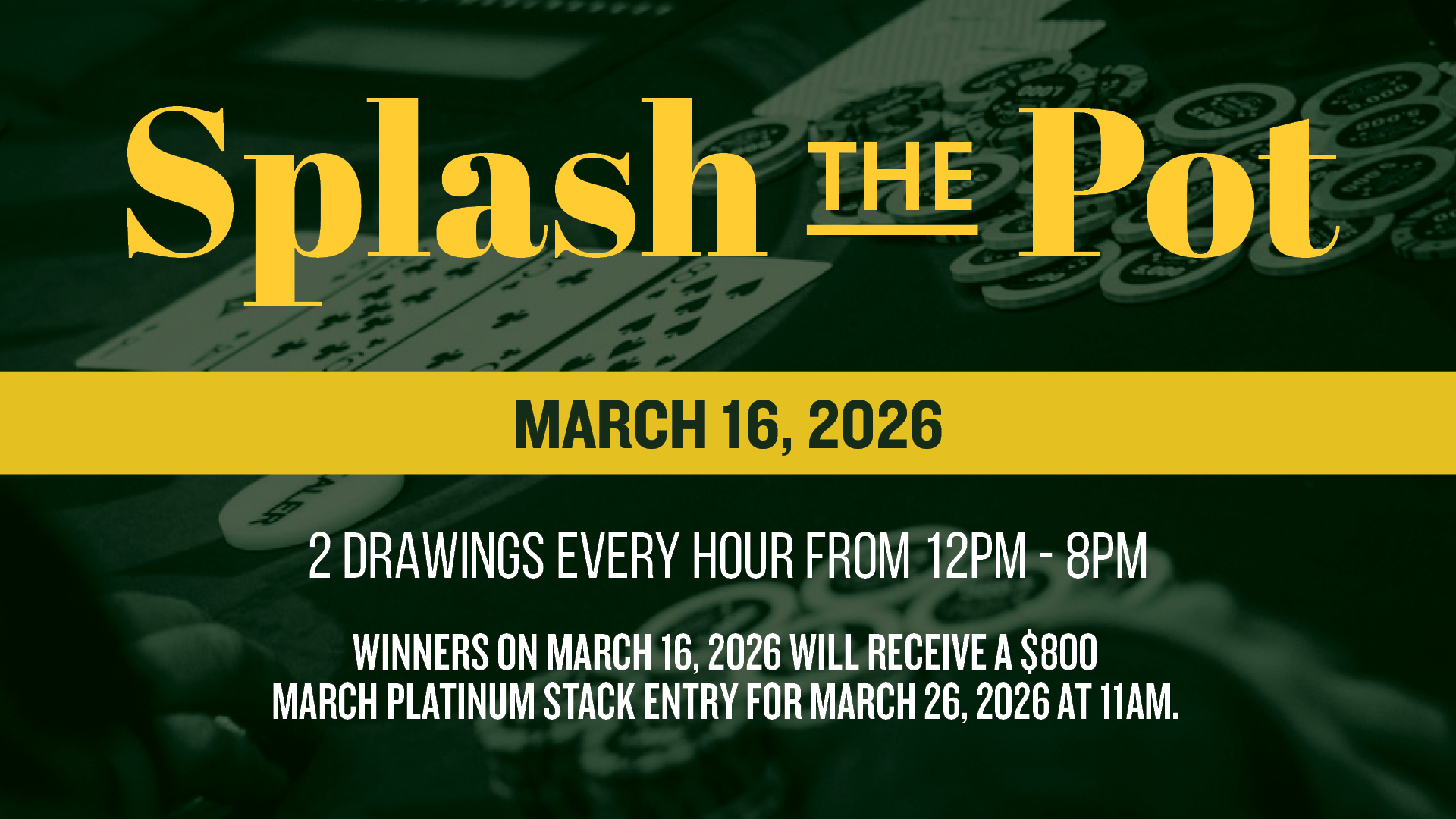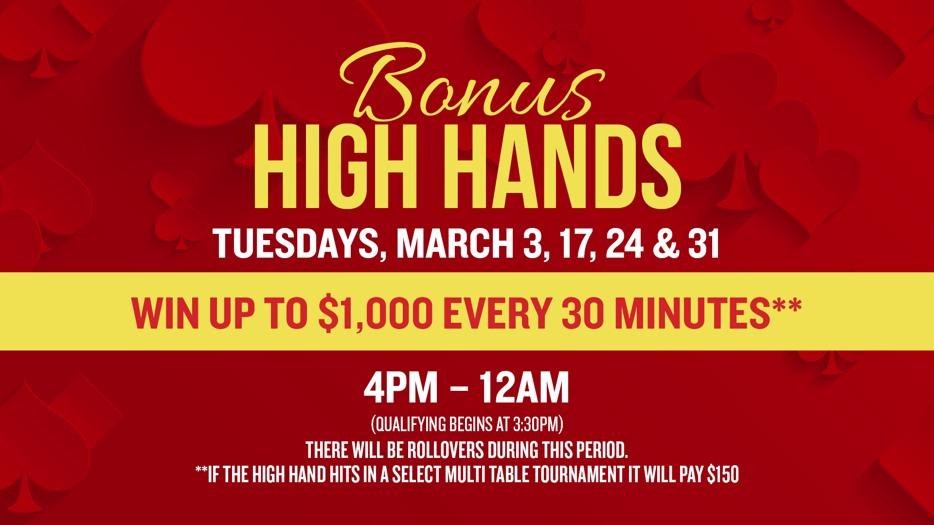 1. Players must enter designated poker tournament events between March 1 – March 31, 2026. The following events are not eligible for the leaderboard. 1. Satellite Events & 2. Survivor Events