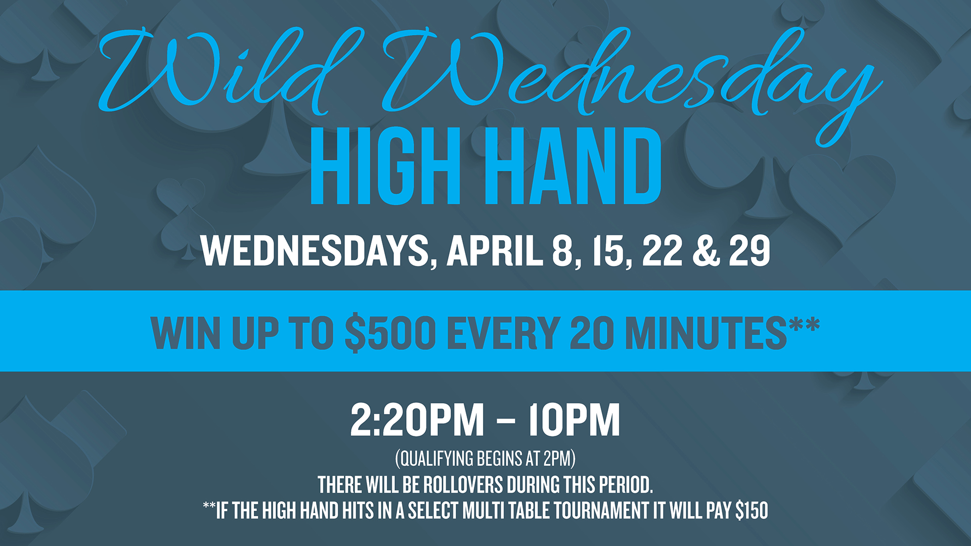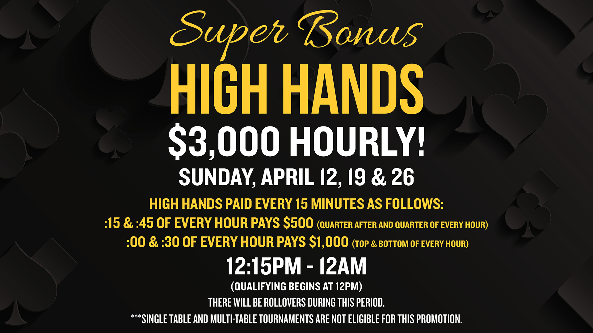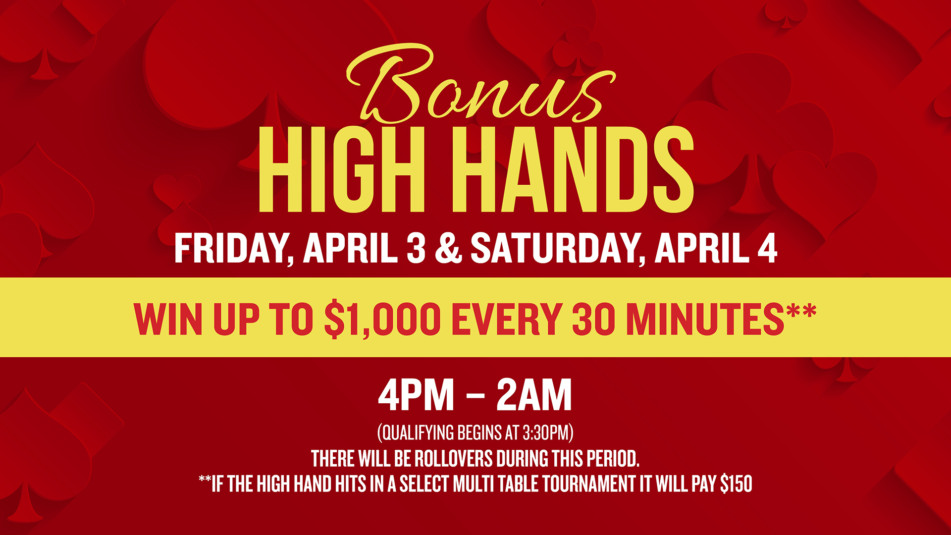 1. Players must enter designated poker tournament events between March 1 – March 31, 2026. The following events are not eligible for the leaderboard. 1. Satellite Events & 2. Survivor Events