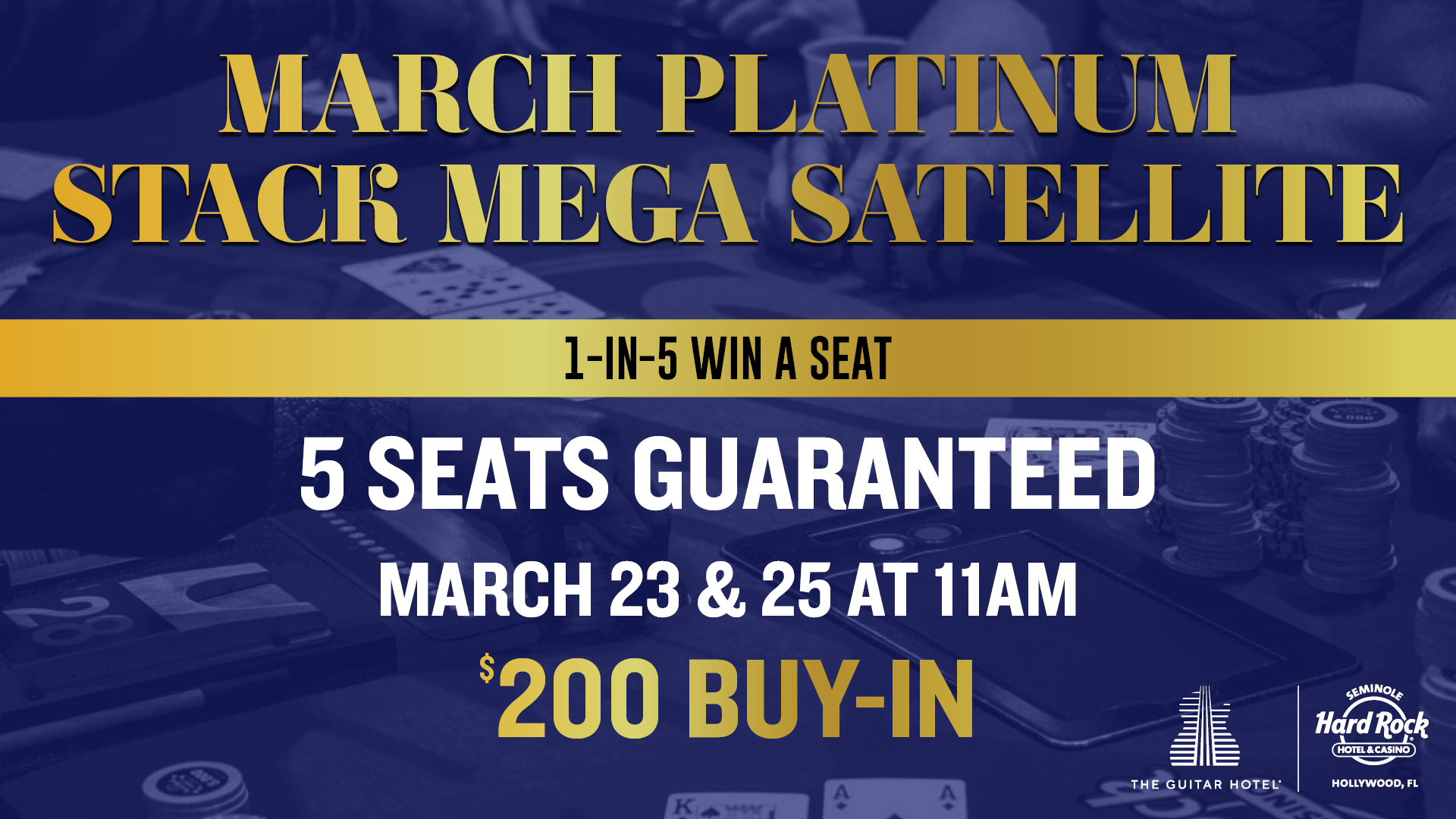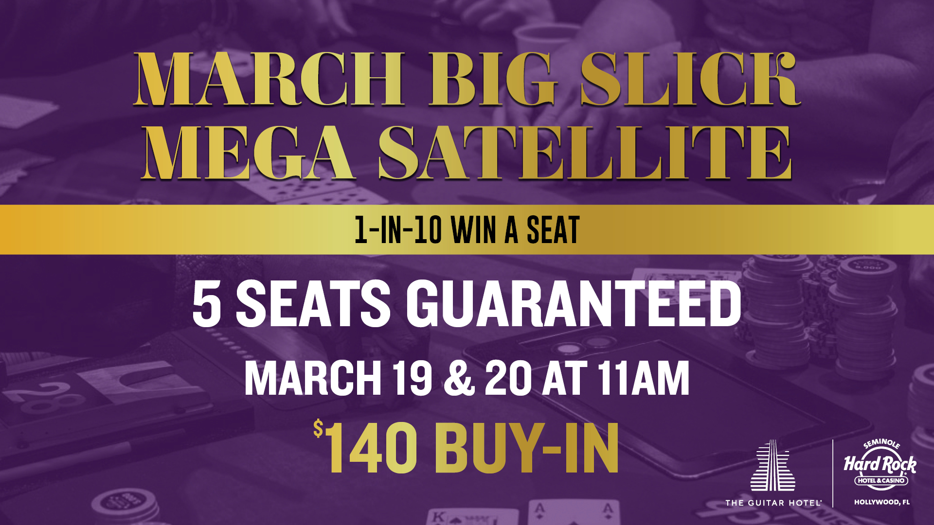 | Fri, Mar 20 | 11A | $140 | 5 Seats | Mega Satellite into Big Slick | ||