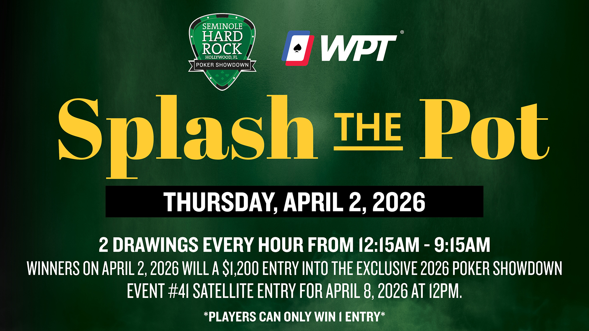 -$3,500 entry into the 2026 Poker Showdown Championship -$2,200 entry into the 2026 Showdown Event #50