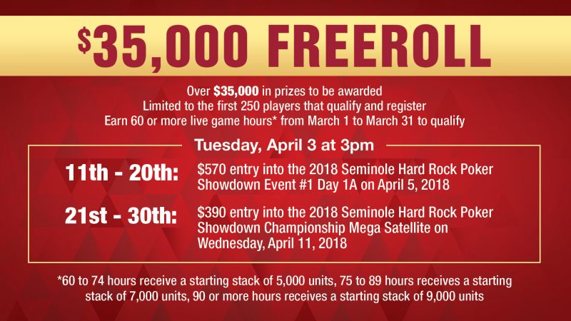 2018 Escalator Series $35,000 Freeroll; Qualify in March, Win Prizes April 3rd March 17, 2018 @ 1:32PM by Seminole Hard Rock Poker