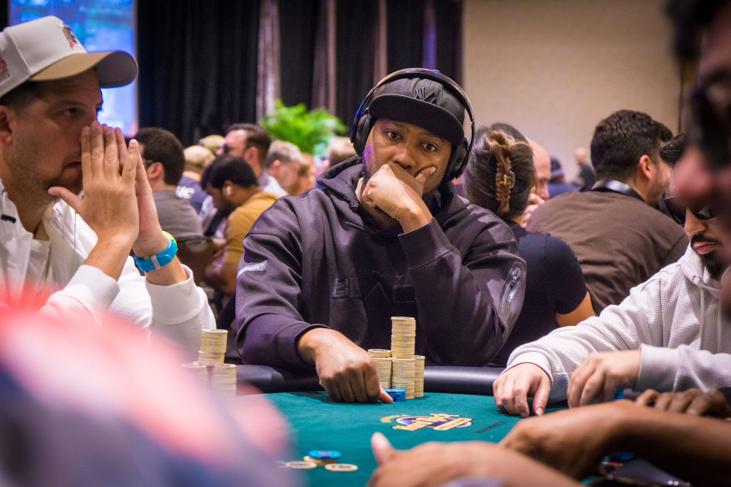 The Platinum Stack dropped to the last six tables as they rolled into Level 22. They will play out this level, take a short break, and plan their dinner break around 6 pm.
