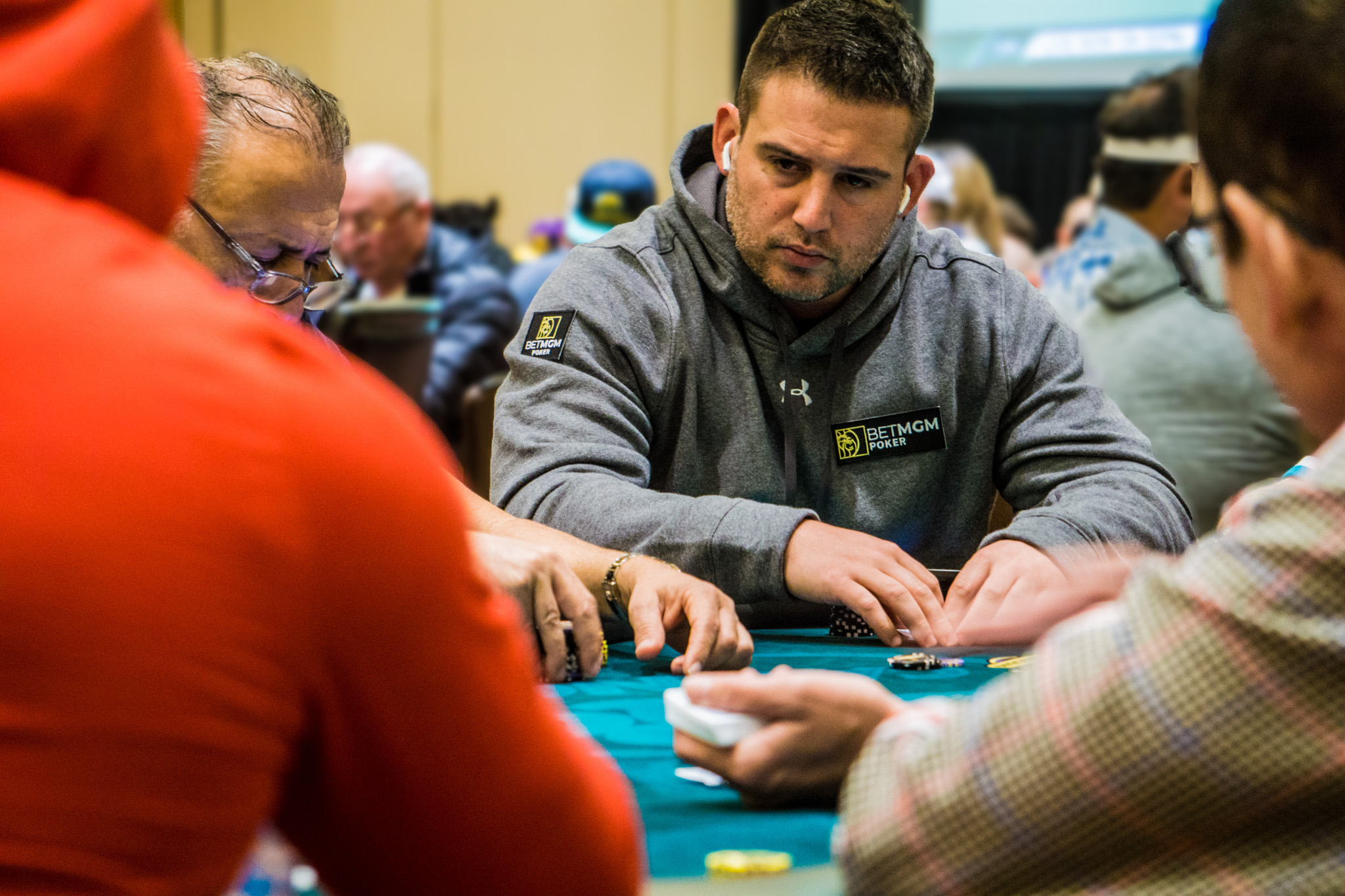 Among the talented early crew, we found three-time WSOP bracelet winner Chance Kornuth, high roller monster Alex Foxen, four-time WPT champ Darren Elias, and three-time WPT winner (and 2014 WPT Poker Showdown champ) Eric Afriat.
