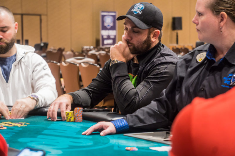 Any cash in the WPT RRPO Championship will be a good return-on-investment for Jason Young. His buy-in total was $0 into the headliner with two bullets in his pocket and he’s comfortable with 140,000 on Day 2.