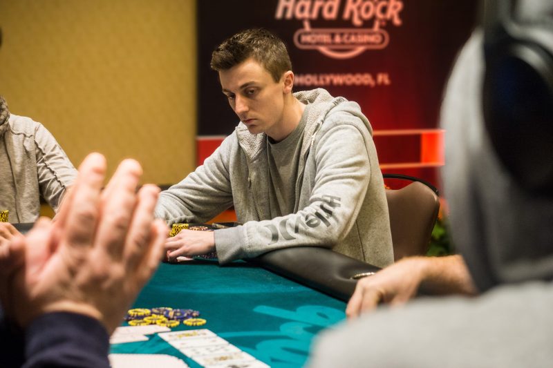 Nick Schwarmann open/shoved for 940,000 from the cutoff and Alan Krockey called in the small blind. Aleksandr Shevelev released his big blind and it was another race, this time for the live-stream final table seat.