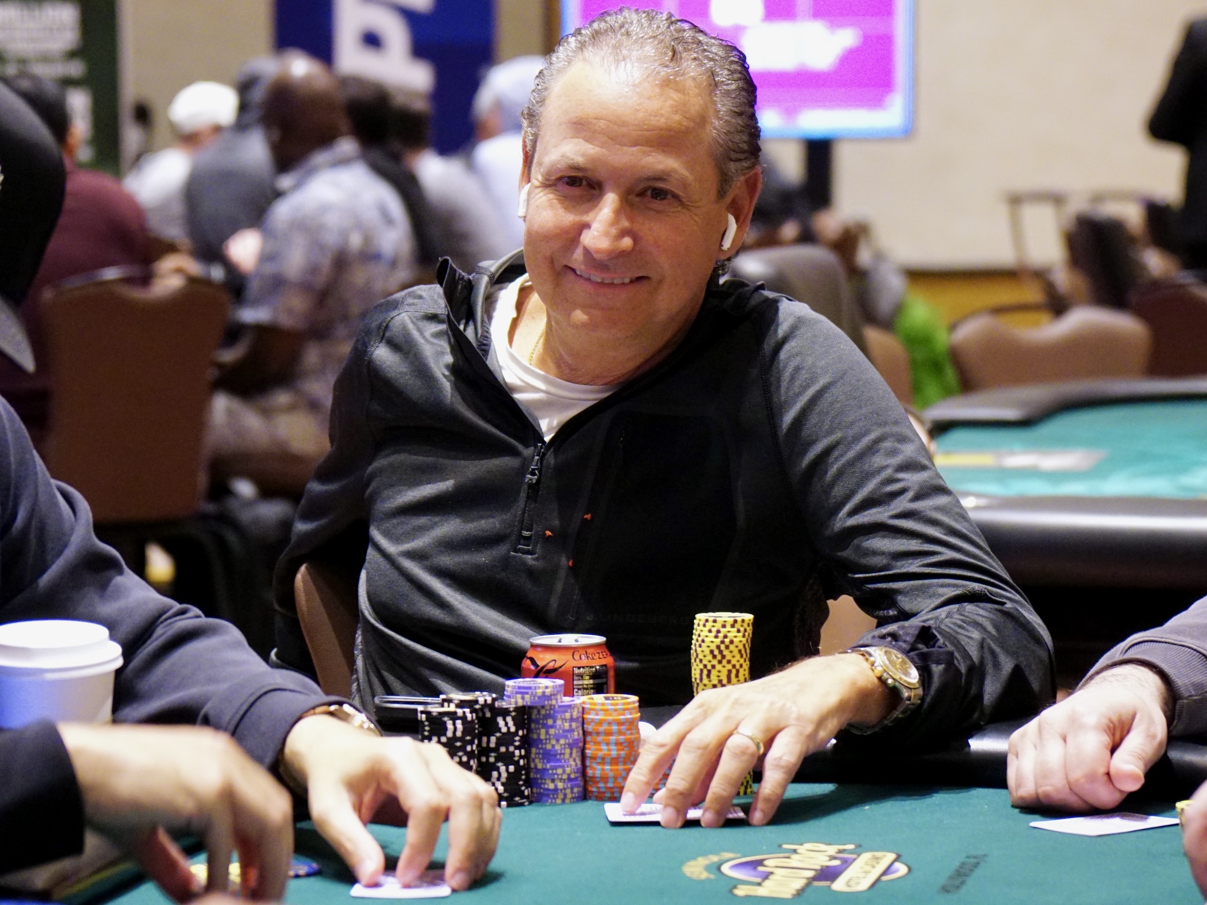 With 80 players remaining from a field of 1,417, the average chip stack is around 885,000 (35 big blinds). The remaining players are guaranteed at least $9,600 each.