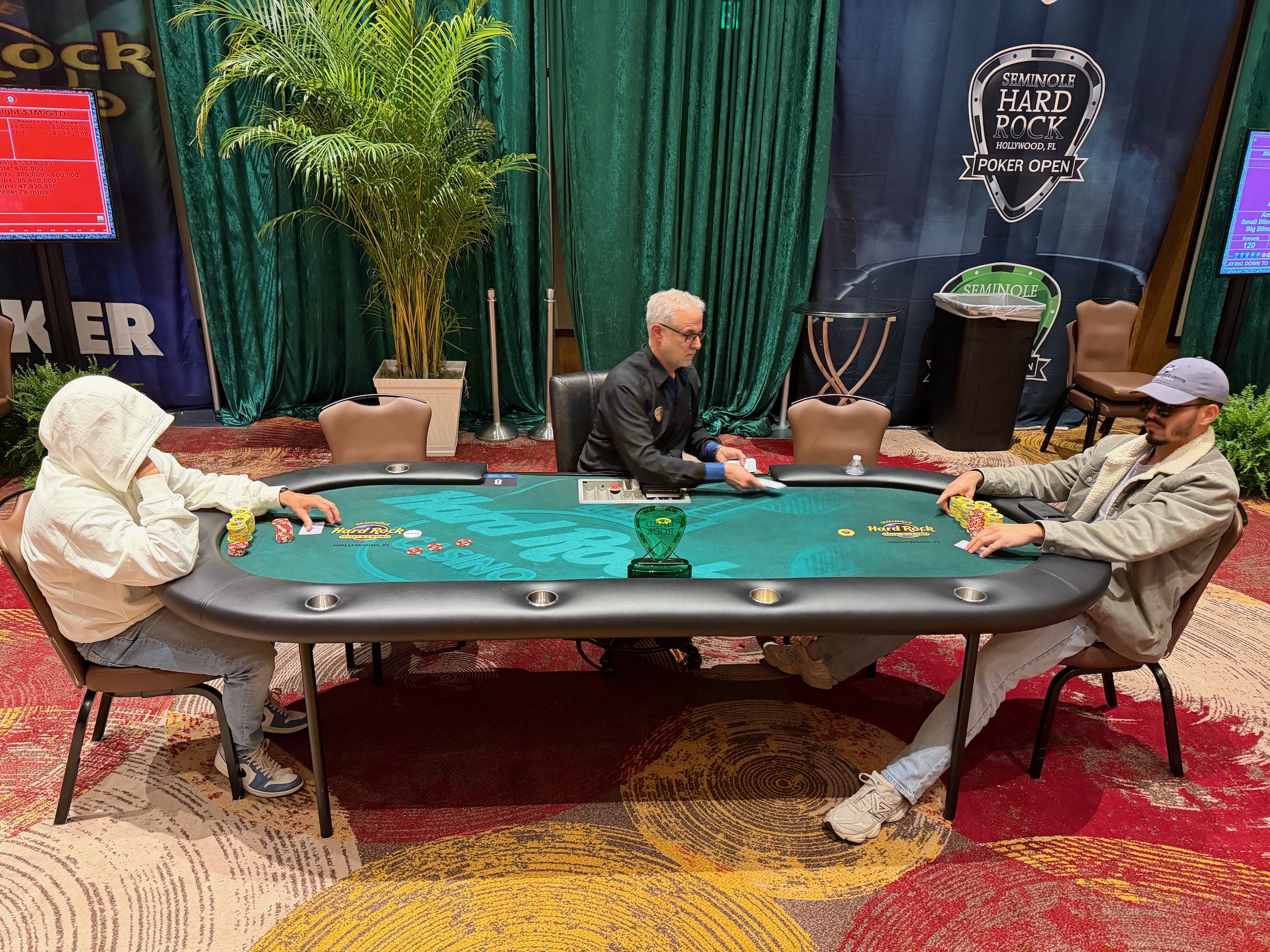 to win the pot with a jack-high straight, and Henao mucked. Exposito is back to a roughly 3-to-1 chip lead.
