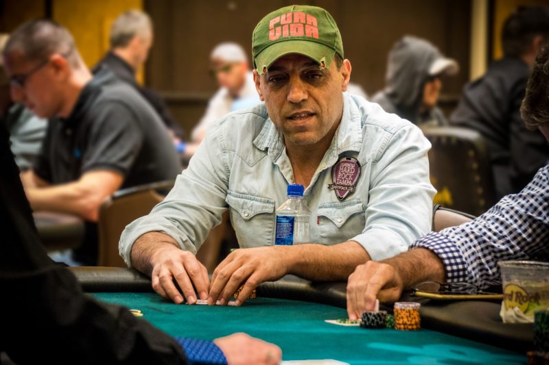 Wally Maddah is back in the ballroom after having an unfortunate end to his Friday morning grind. The Seminole Hard Rock Tampa poker ambassador ran into a cooler, kings versus aces, to blast away his big Flight C stack but he says he’s ready to find a bag tonight.