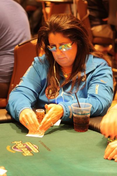 In a hand that extended into the break, 3-time WSOP Circuit ring winner Nancy Birnbaum was all-in for ~30k on the river with a board showing