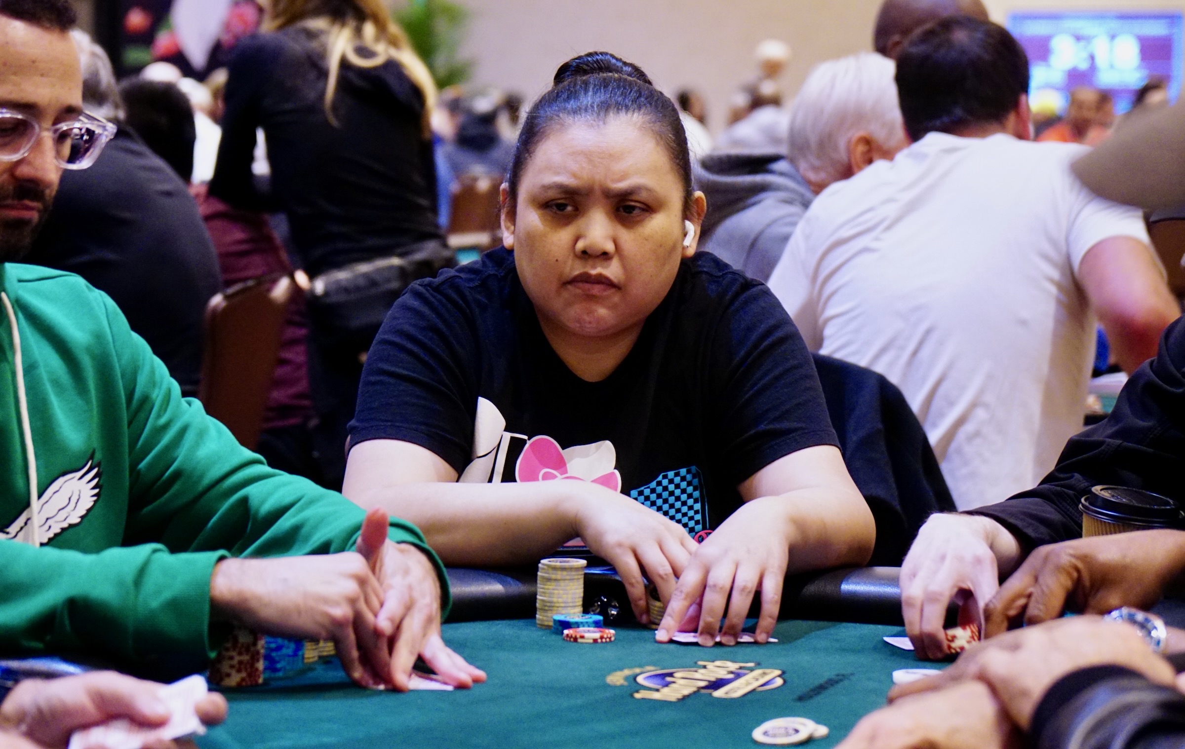 Christine “Blaze” Sazon was all in from the big blind for 205,000 with