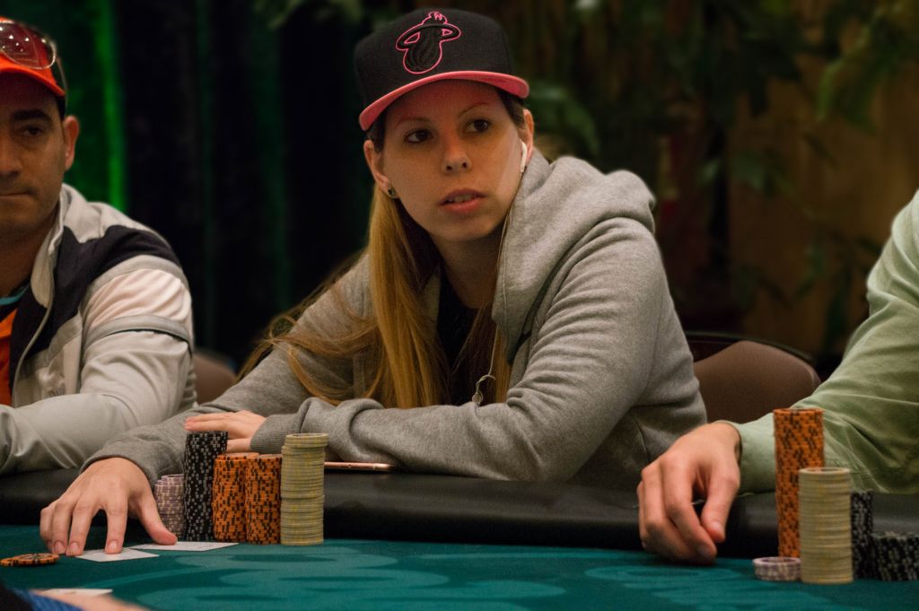 Loni Harwood was among the leaders as they moved into Level 14, but was dropped back to an average stack after doubling up an opponent.