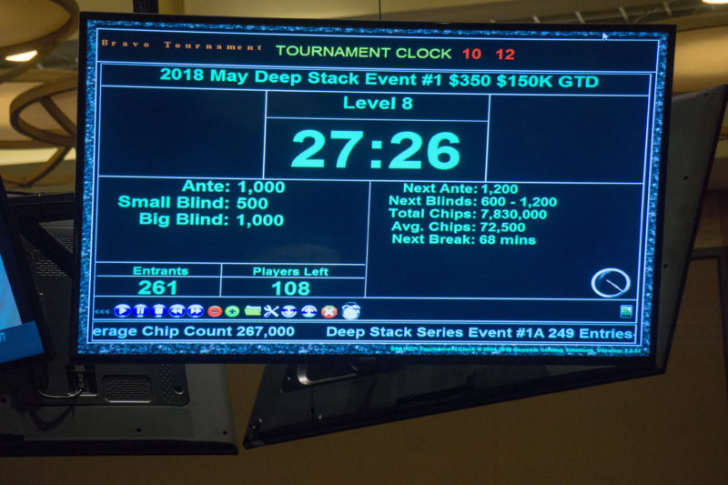 In the blink of an eye, the entry count blasted over 251 after a quick run to the registration desk. Event 1 now has more than 500 combined entries to push the prize pool over the guaranteed $150,000.