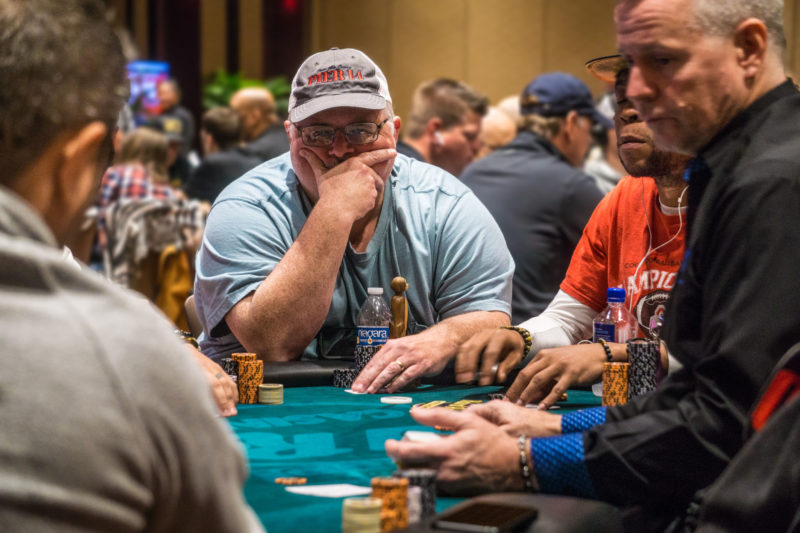 We have a new big stack in Flight E and it belongs to Carey “Bubba” Dukes. He is up to 170,000 and tablemate Andrew Cooper is not far behind with 160,000. Other notable big stacks include Daniel Rambally (149,100), Brent Ballentine (144,800), Nigel Murray (136,700), and Jonathan Gordon (135,000).
