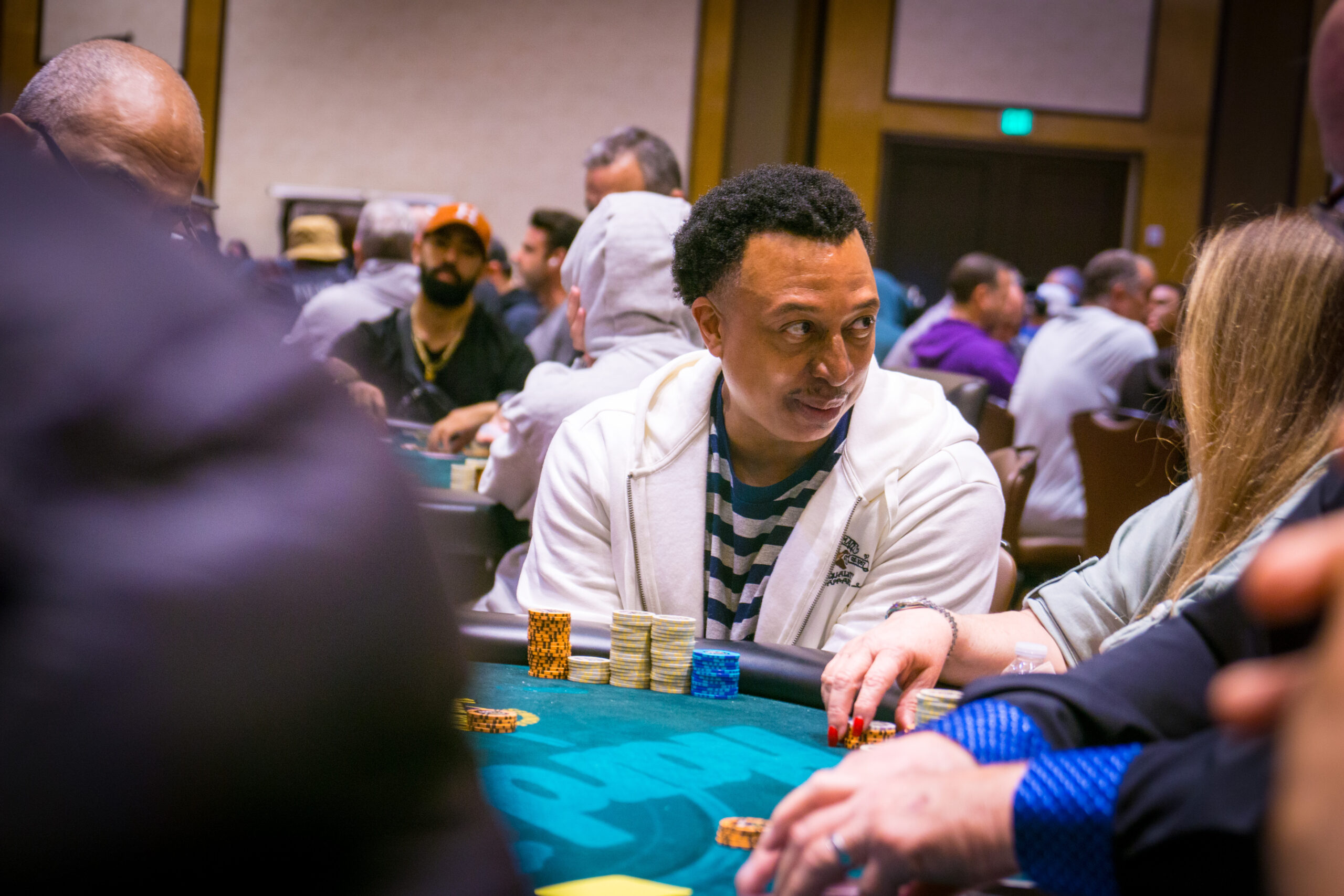 We found two big stacks in the field while they were gone and it wasn’t close with the rest of the field. Kevin Chan was the leader at break with 538,000 followed by Quentin Jones with 526,000 and no one else was over 400K.
