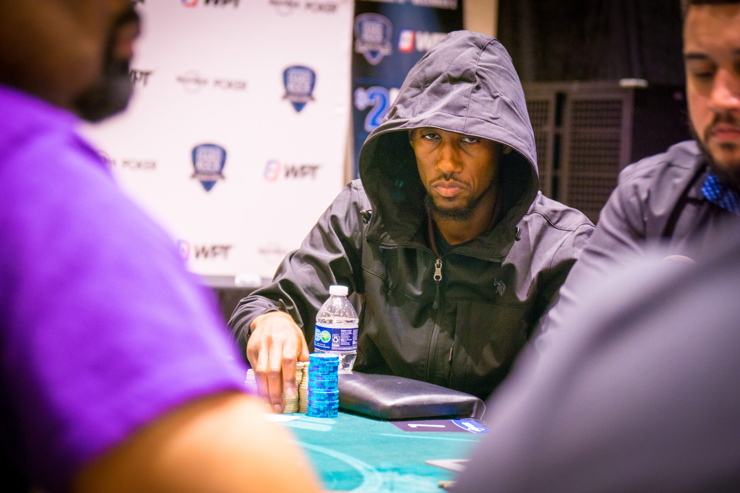 With 220 players remaining from a field of 6,853, the average chip stack is around 625,000 (31 big blinds). The remaining players are guaranteed at least $1,480 each.
