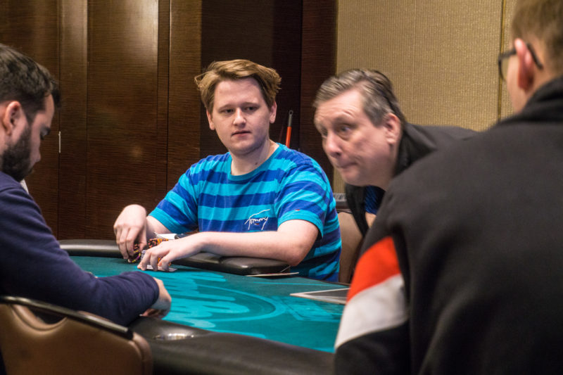 A walk among the tables found Jeremiah Williams leading with a lot of big guns trying to chase him down. He holds 85,000 and Andrew Hawkins looks like his closest competitor with 56,000.