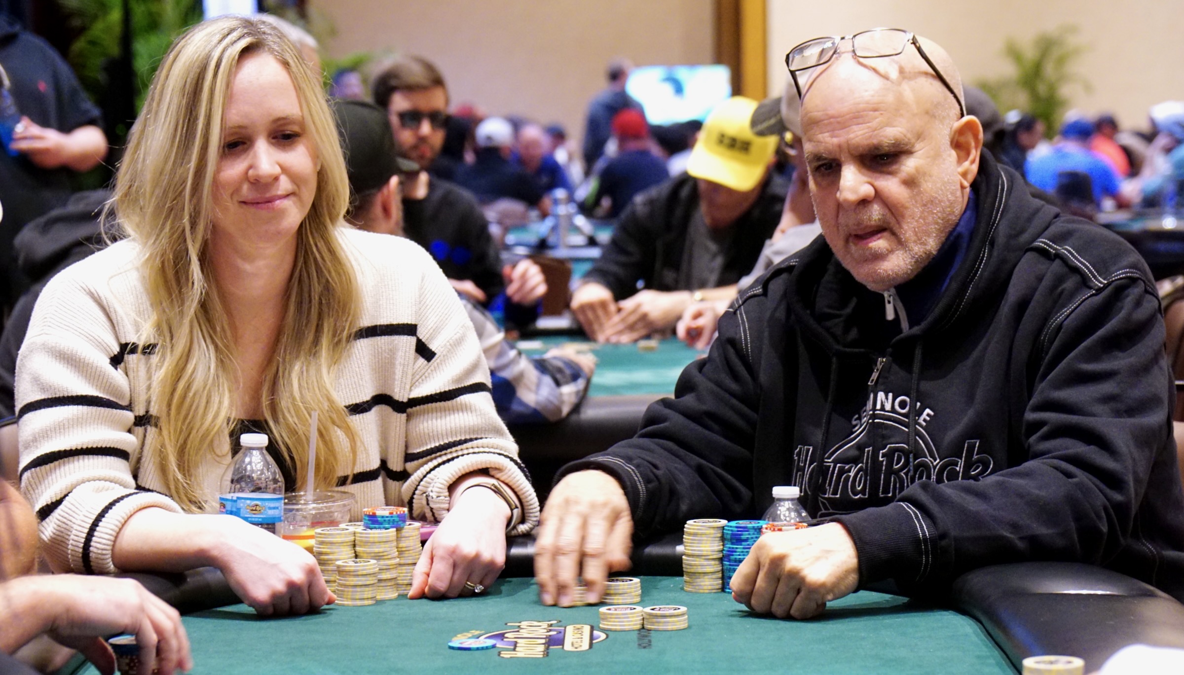 These were their cards in descending order of chip counts: