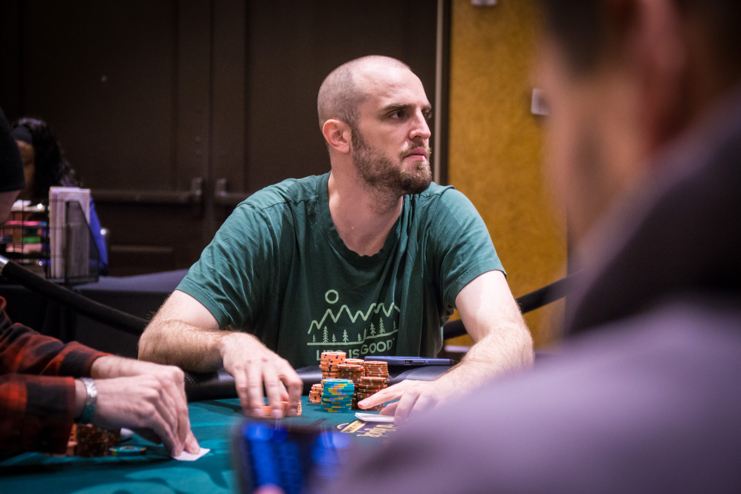 During Omaha-8, A.J. Kelsall raised to 60,000, and Ryan Hoenig called from the big blind.