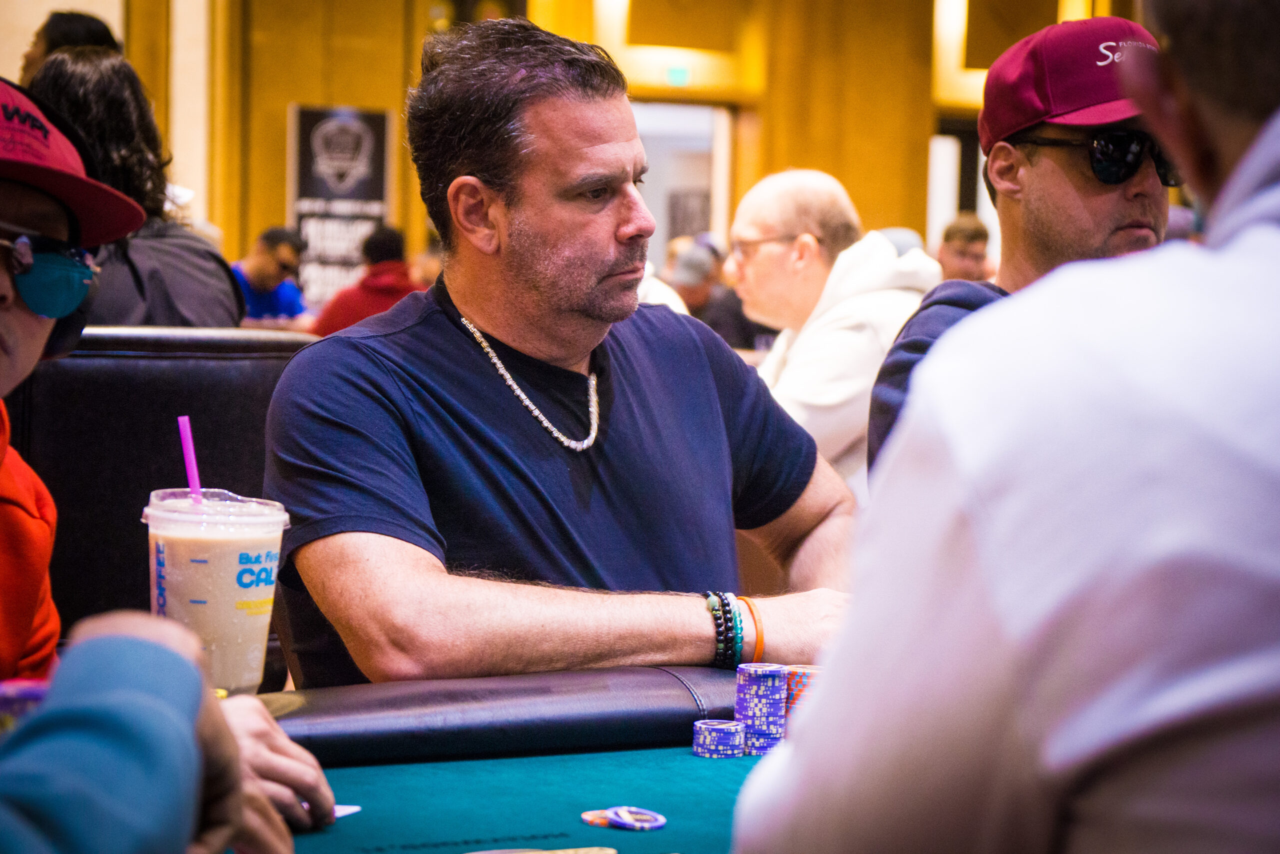 We had a great turnout for the $1,100 Triple Stack with 112 entries on a Monday afternoon and nine players remain for a final table return at noon.