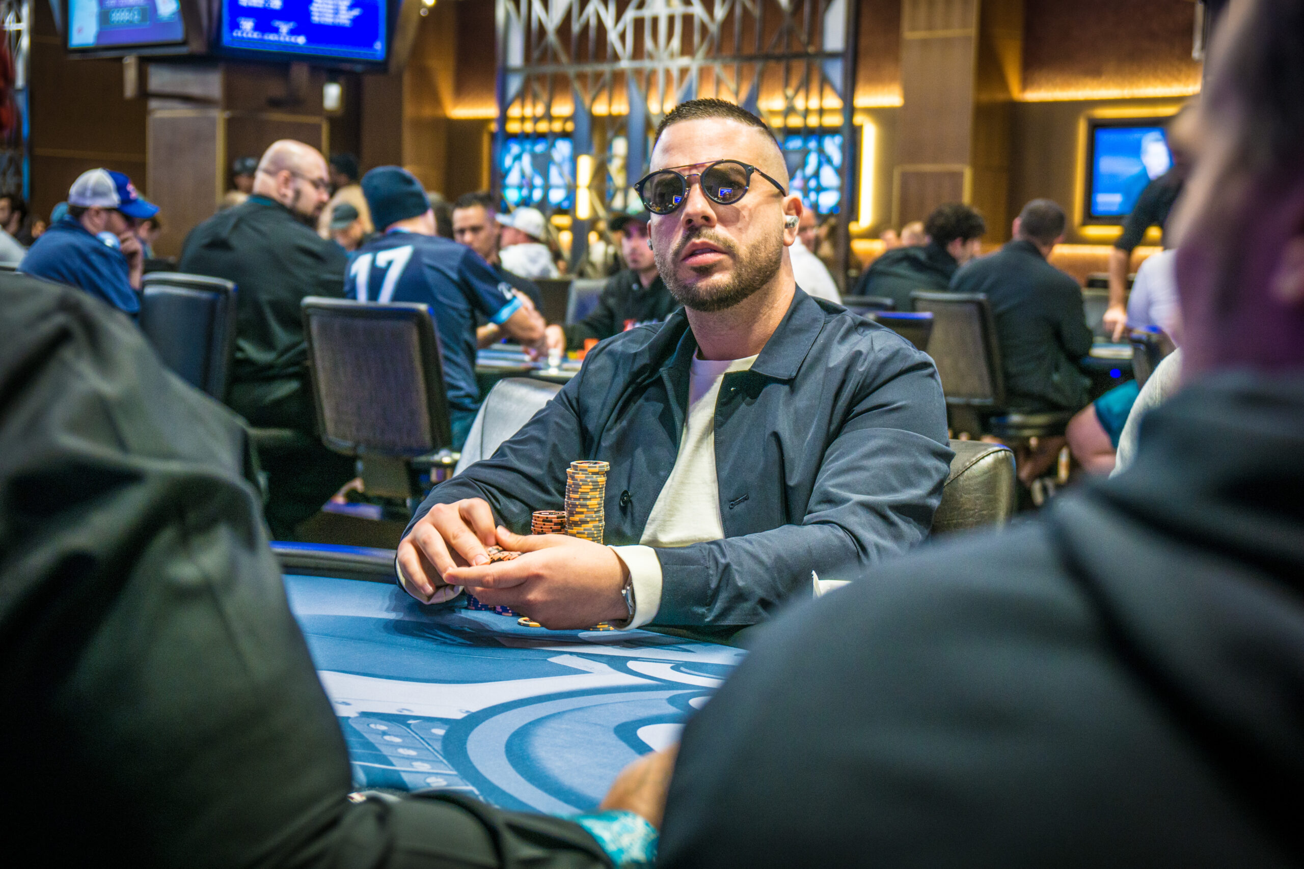 After a big hand late in the night when he sent two players out, reigning SHRPO champ Farid Jattin is the early leader heading to Day 2 with 379,000. He followed by Min Zhang with 361,000 and Cameron Strorto with 321,000.