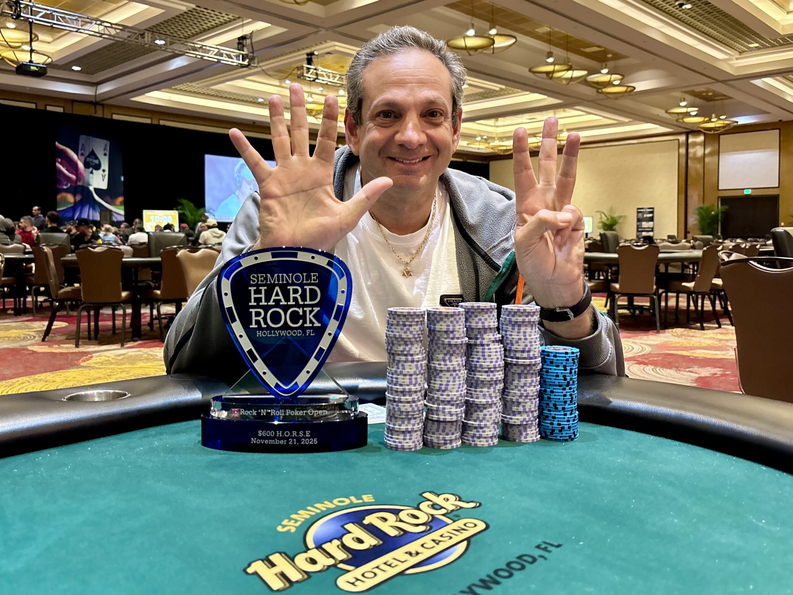 Event 11 of the 2025 Seminole Hard Rock ‘N’ Roll Poker Open was a $600 H.O.R.S.E. A field of 62 entries produced a prize pool of $32,240 and winning the lion’s share was Hal Klein, taking it down outright for $11,605 and his eighth SHRP major series trophy victory.