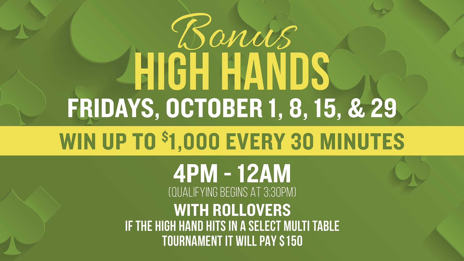 Promotions OCTOBER 2021 PROMOTIONS September 28, 2021 @ 4:03PM by Jason Heidenthal Cash Game PromotionsTournament Promotions