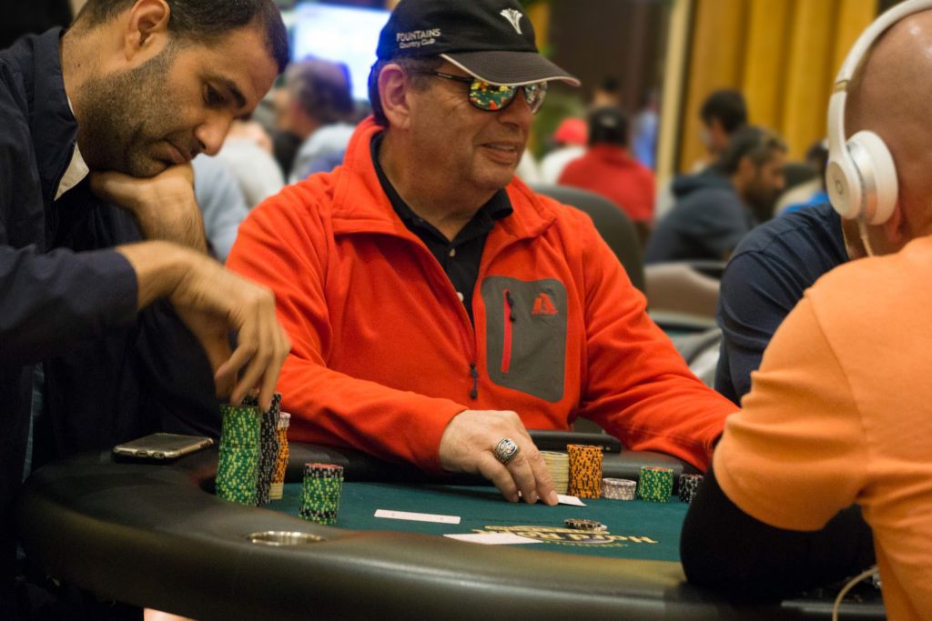 Al Gomez was looking at an early end to his day. He was moved to a table at the front of the room and sat with only 8,000.