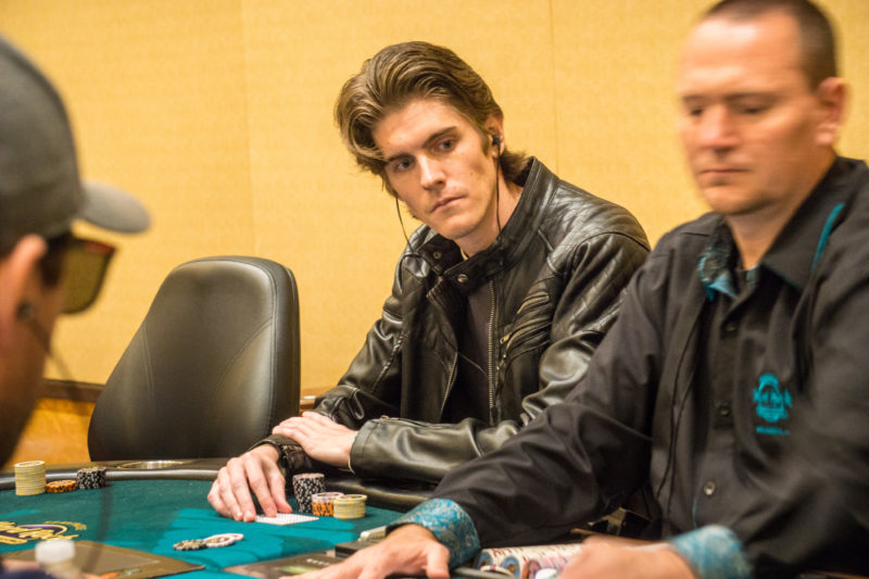 flop already out. One player was all in, another was contemplating, and Brian Powell had them both covered once all the chips were committed.