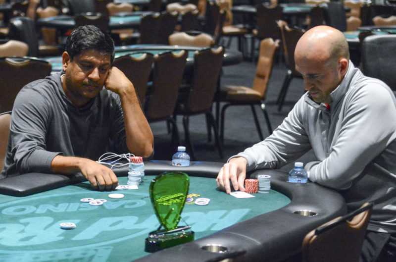 river completed the board, giving Resendiz a pair of aces to double through Patel.