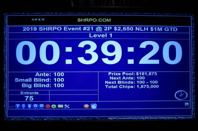 $2,650 SHRPO Big 4 Event 21 (Single Re-Entry) $1,000,000 Guaranteed | Structure Level 1: 100/100 with a 100 ante Entries: 75