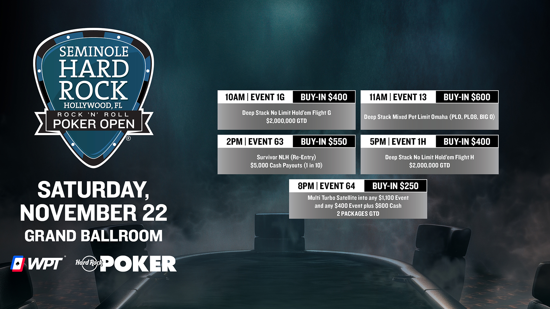 5PM: Event 1 Day 1H – $400 Deep Stack NLH (Re-Entry)