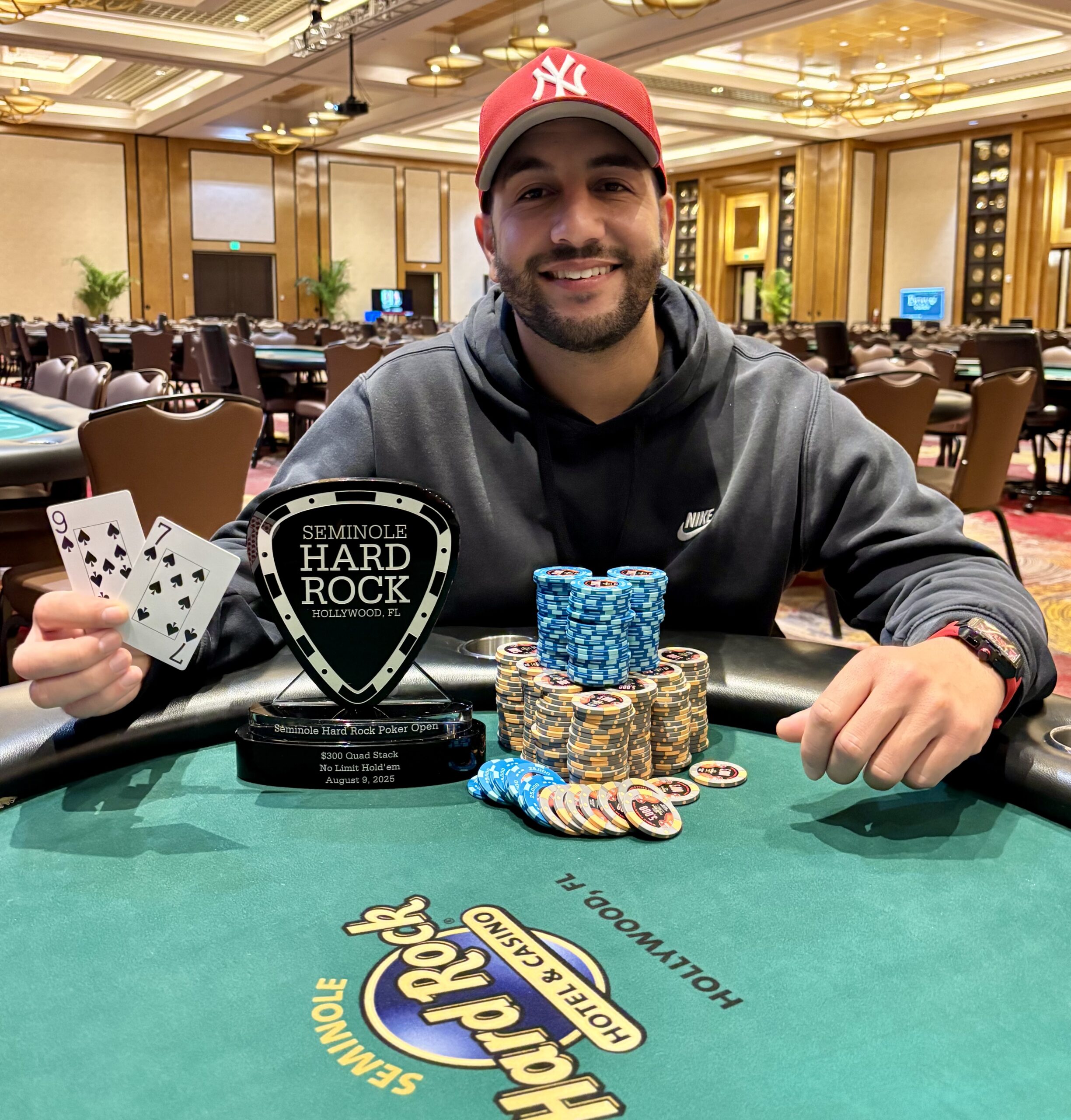 Event 49 of the 2025 Seminole Hard Rock Poker Open was a $300 Quad Stack No-Limit Hold’em (Re-Entry), drawing 131 entries for a prize pool of $32,750.