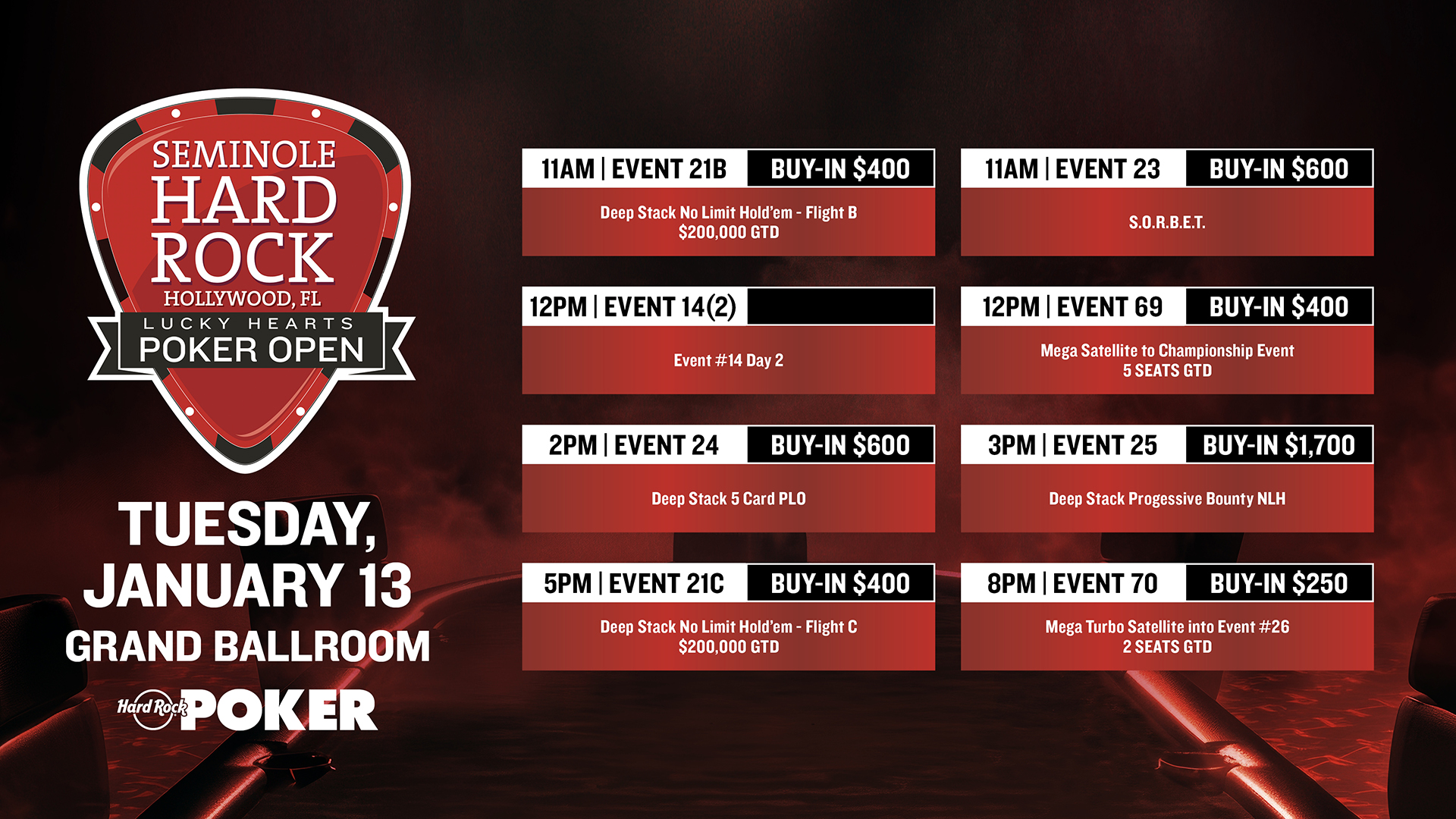 They’ll sit down to 20,000 deep stacks and all levels last 30 minutes for the one-day trophy event. Late registration and re-entries are available until the start of Level 9 at 7:30 pm.