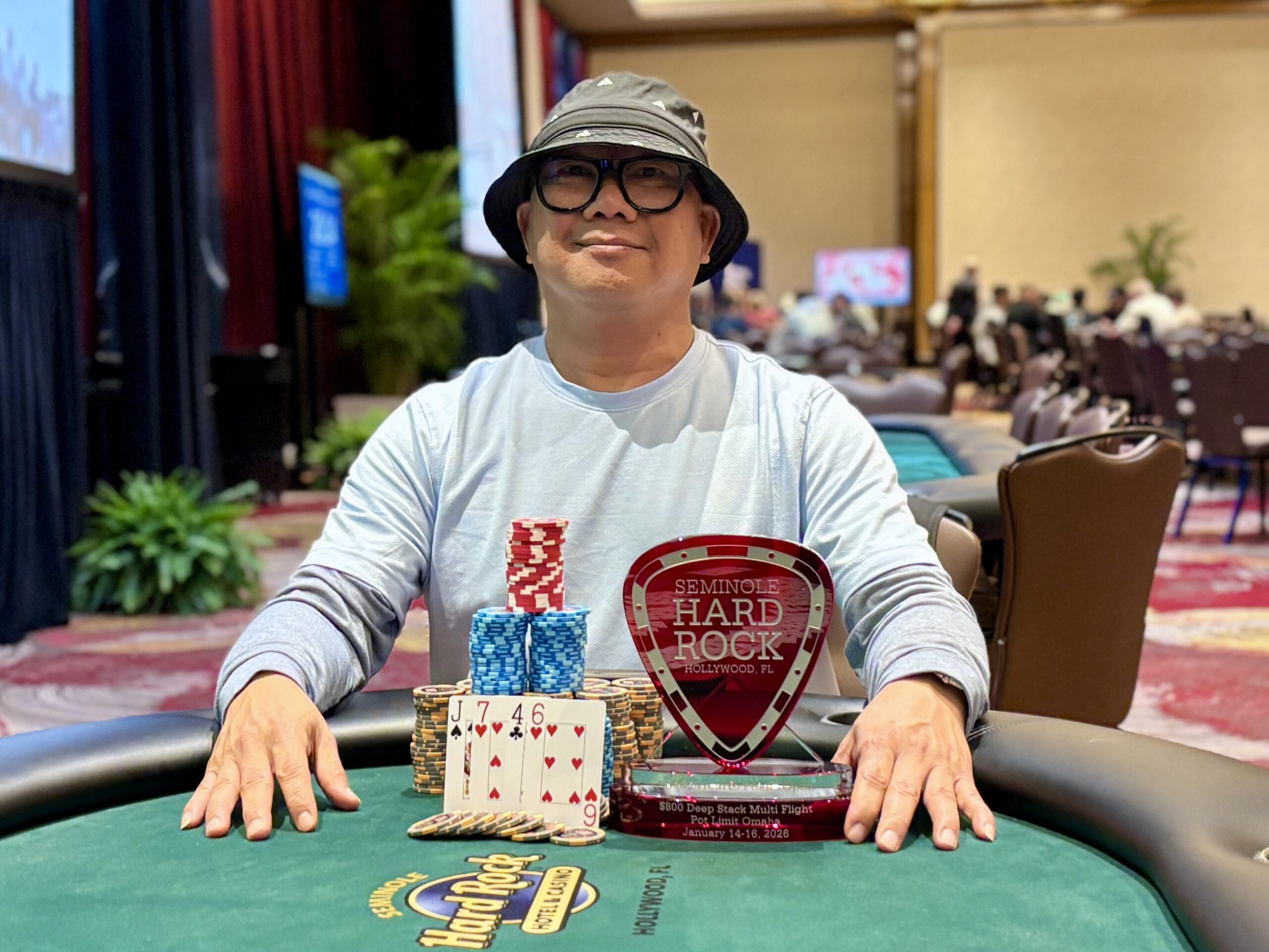 Event 28 of the 2026 Seminole Hard Rock Lucky Hearts Poker Open was an $800 Deep Stack Pot-Limit Omaha, drawing 218 entries for a prize pool of $153,690.