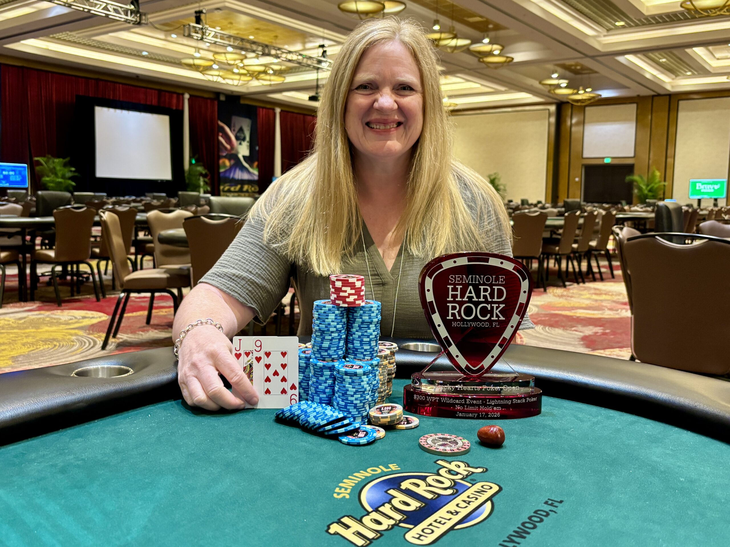 A four-handed deal was reached at the final table and Wendy Horan was the chip leader at the time, making her official winner of the WPT Wildcard Lightning Stack for $5,671.