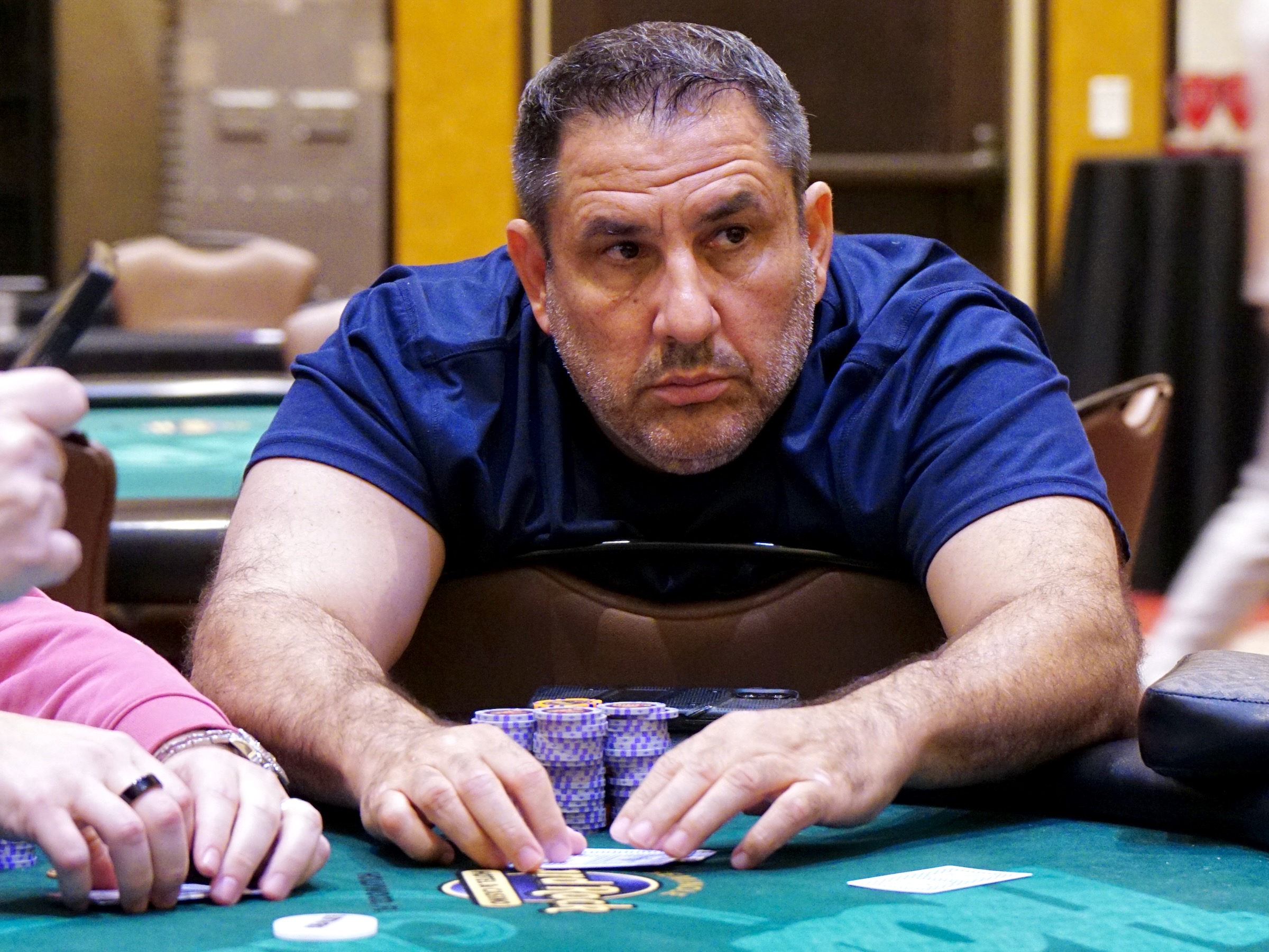 , Garonce checked, and Hart continued for 100,000. Garonce check-raised to 510,000, and Hart tanked for a while before he reraised all in with a slightly bigger stack. Garonce called all in for about 1,250,000.