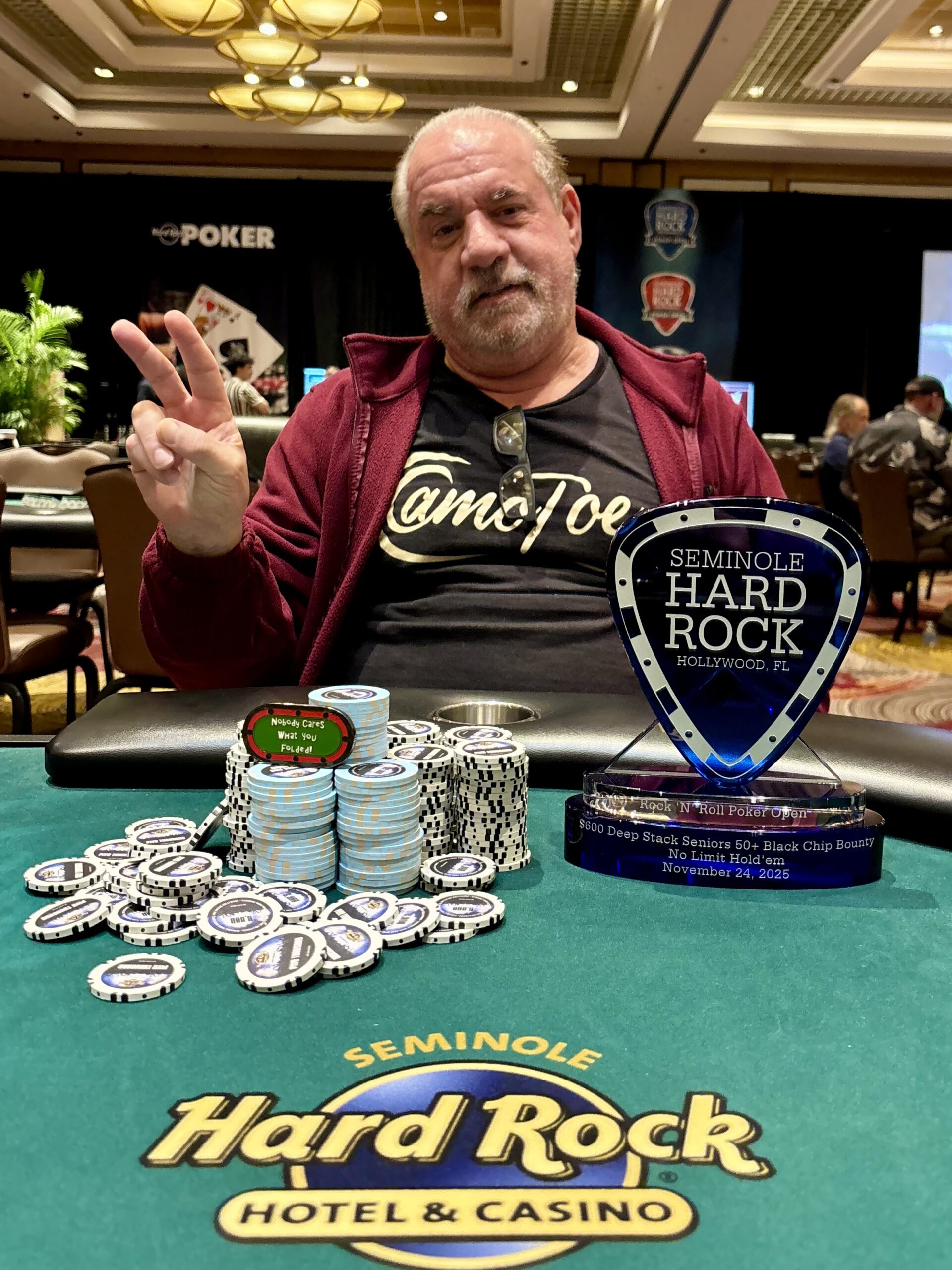Event 19 of the 2025 Seminole Hard Rock ‘N’ Roll Poker Open was a $600 Seniors 50+ Black Chip Bounty No-Limit Hold’em. A field of 122 entries generated a prize pool of $51,240, with an additional $12,200 set aside for bounties.
