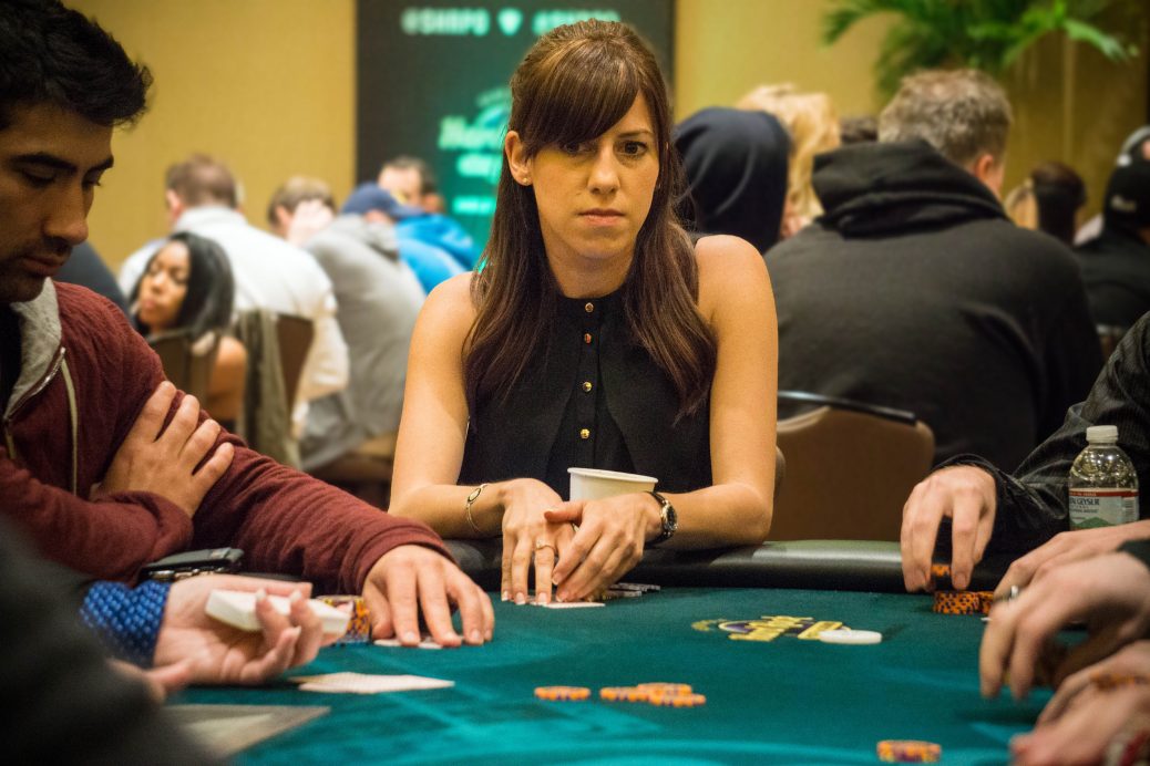 WSOP bracelet winner Kristin Bicknell open/shoved for 14,500 from early position and action folded around to Jason Wheeler in the big blind. After confirming how much more it was to call, he called.